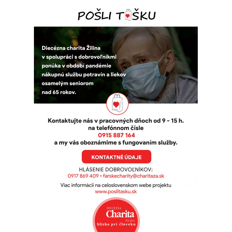 "Pošli tašku" projekt nákupnej služby potravín a liekov osamelým seniorom nad 65 rokov je spustený!