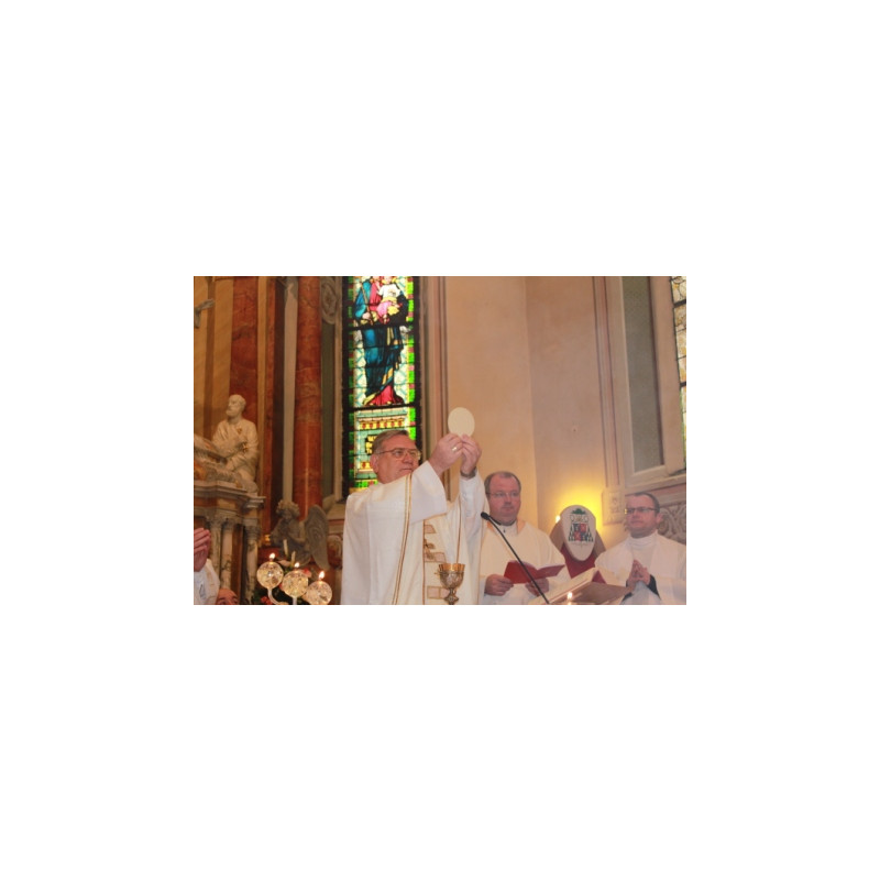 Svätou omšou poďakoval Bohu za ochranu novej diecézy, taktiež vyslovil vďačnosť všetkým veriacim svojej diecézy za jej všestrannú podporu. V príhovore vyjadril, že ku kresťanskej pravde patrí i to, že za všetko dobro ktoré konáme pre iných sa možno nedočkáme úspechu, bohatstva, možno ani zdravia nie, ale dočkáme sa niečoho významnejšieho: Božieho priateľstva. Ďalej dodal, že slová proroka Jeremiáša „Blažený muž, ktorý v Pána skladá dôveru a on je jeho nádejou" nehovoria nič o tom, že tomuto človeku spadne k nohám všetko šťastie, ale ubezpečujú, že bude ako strom zasadený pri vode, ktorý nevyschne a bude prinášať ovocie.